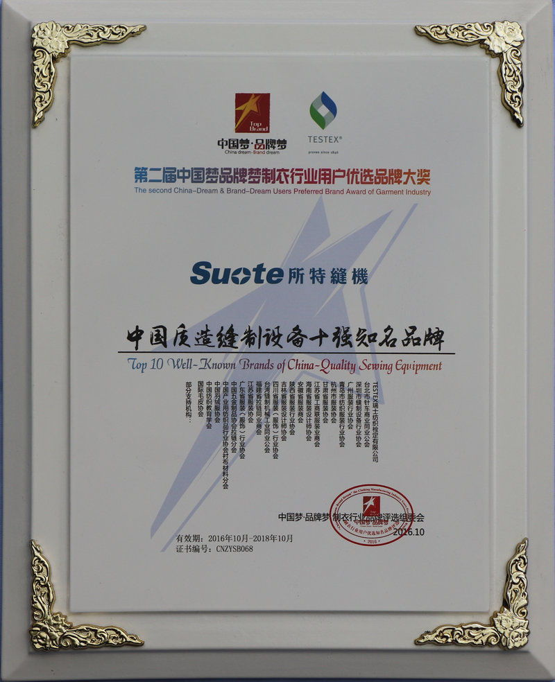 新廠房建成,使用面積3萬多平方米。公司更名為:浙江所特縫制機(jī)械有限公司
